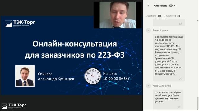 Онлайн-консультации для заказчиков по 223-ФЗ от 08.09.21