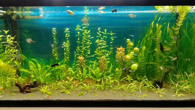 Наконец то пришел синий фон от компании juwel как раз по размеру 50 на 100см. Получилось отлично аквариум стал ярче и светлее с ним. По рыбкам добавил четырех меченосцев санта клаус и пару сомиков коридорас леопард. Как теперь смотрится аквариум не очень нравиться, думаю так и оставлю. Растения растут хорошо, но вот проблема начали разрастаться нитчатые опять((( Позже буду выводить их с помощью специальных средств от водорослей... Не забывайте про мой Дзен канал подписывайтесь: https://dzen.ru/id/5f3e2489bd4ec2375e...