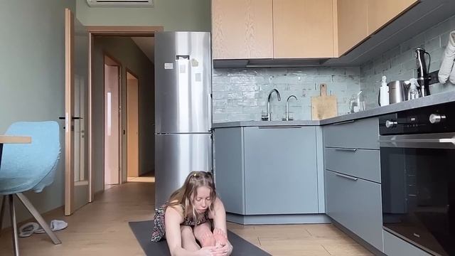 Home Workout and Stretching in a dress