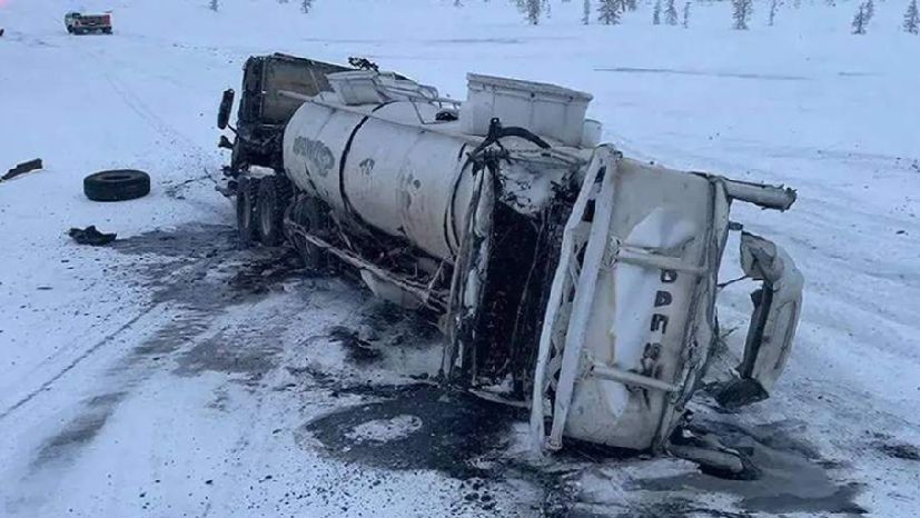 В Якутии произошел разлив нефтепродуктов после опрокидывания бензовоза