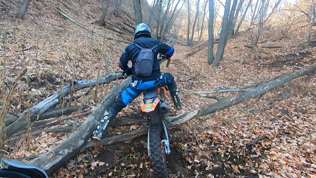 Днём раньше был дождь и все брёвна _очень_ скользкие. Специально не монтировал, но кусок примерно в 100 метров не записан из-за камеры. Кстати, стал тренировать езду на заднем и гораздо легче поехалось.