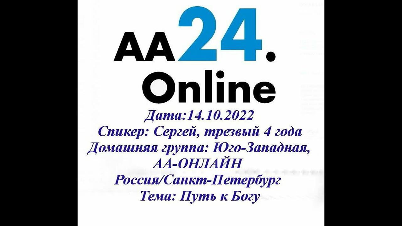 14.10.2022 Сергей, трезвый 4 года Россия, СПБ Юго-Западная, АА-ОНЛАЙН ТЕМА: Путь к Богу
