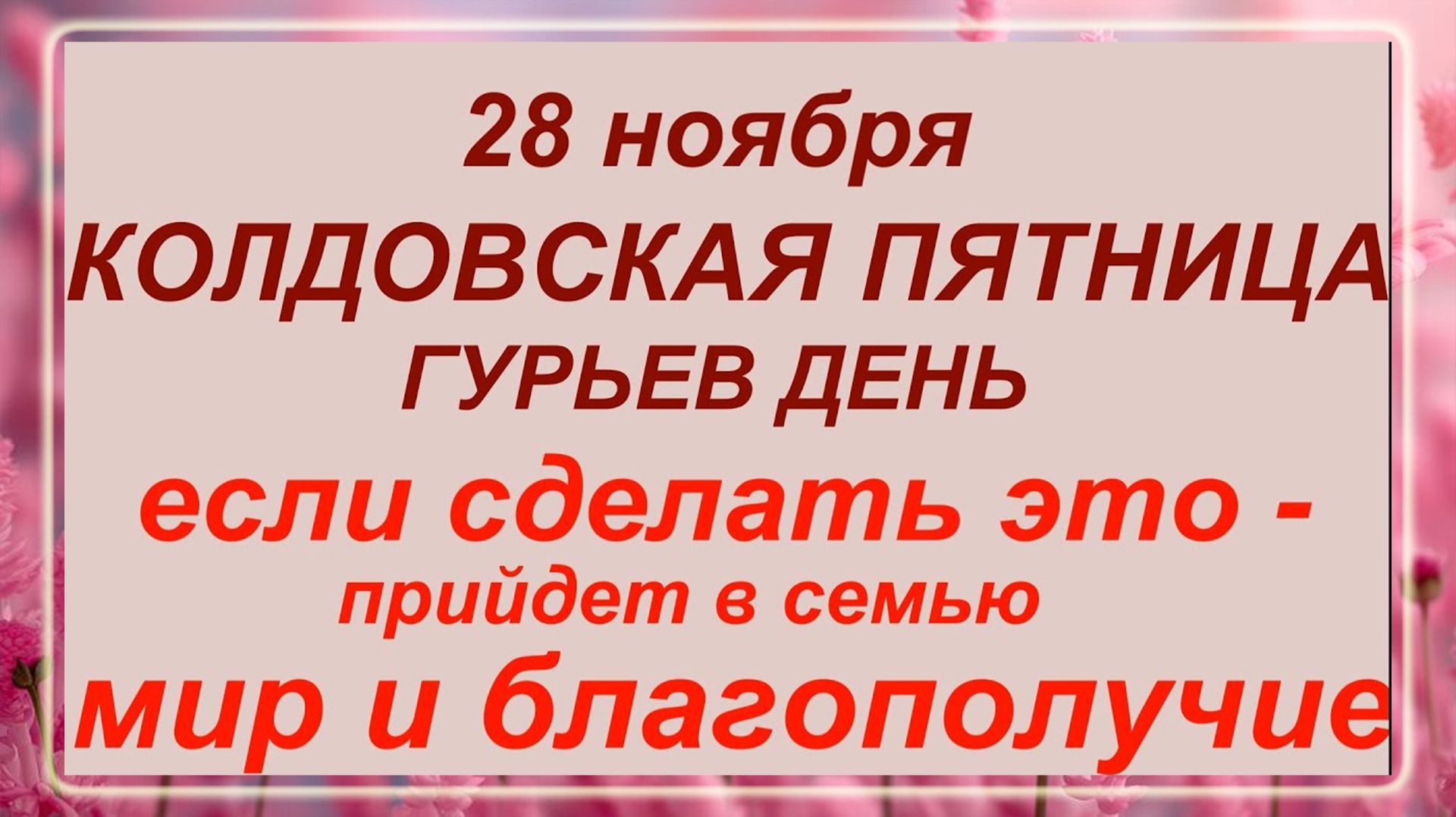 📌 28 ноября отмечается память святых Гурия, Самона и Авива. ✨ День известен как Гурьев день и день Зубного целителя. 🔥 Начинается Рождественский пост, время духовного очищения. 👍 Запрещено есть мясо, рыбу и пить алкоголь. 💬 Особое внимание уделяют лошадям и семейным отношениям. 😊 Традиционные ужины скромные, с кутью и варениками. 🎯 Посещение бани очищает тело и душу. 🚀 Заговоры и заговоры применяются для лечения и охраны. ⭐️ Приметы предсказывают погоду и события. 🌟 28 ноября отмечают День Ангела многие люди. Подписывайтесь на канал и поддержите автора донатом, чтобы получать больше интересных материалов! 🙏 12