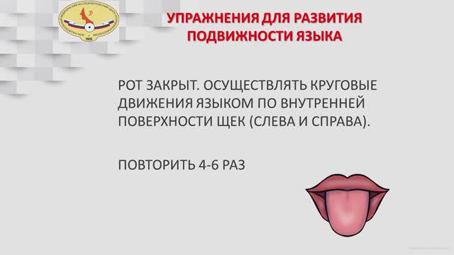РОТ ЗАКРЫТ, ОСУЩЕСТВЛЯТЬ КРУГОВЫЕ ДВИЖЕНИЯ ЯЗЫКОМ ПО ВНУТРЕННЕЙ ПОВЕРХНОСТИ ЩЕК