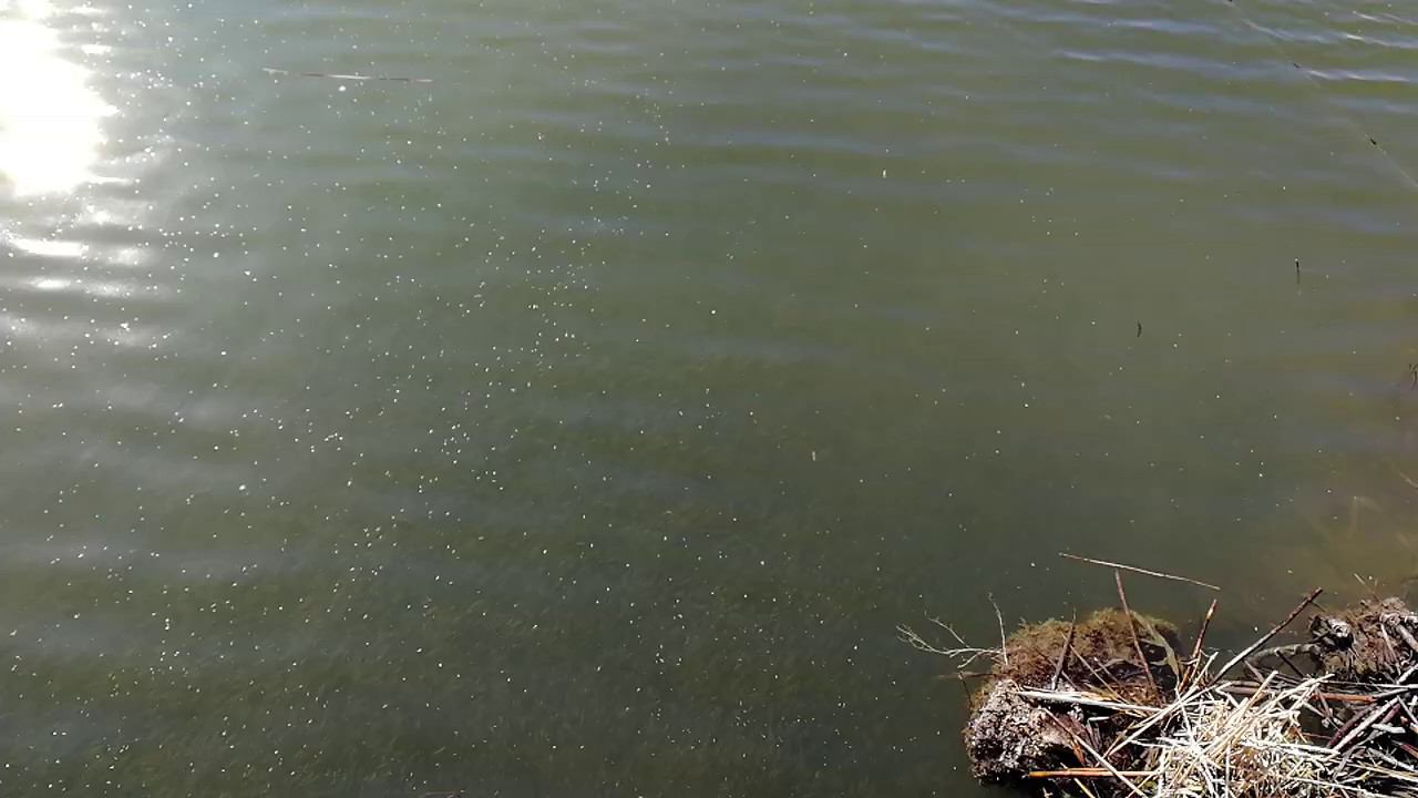 Вот столько малька на открытой воде. Сначала мне показалось, что это трава, но потом присмотрелся ближе оказалось, это миллионы мальков, просто темная вода, даже дна не видно. Непонятно, что за рыба, похожая на чебака... #малёк#рыба#рыбалка