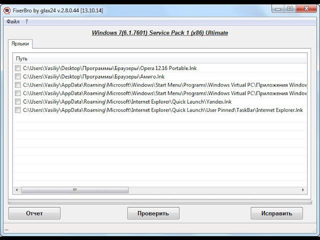 FixerBro — проверка и восстановление ярлыков браузеров