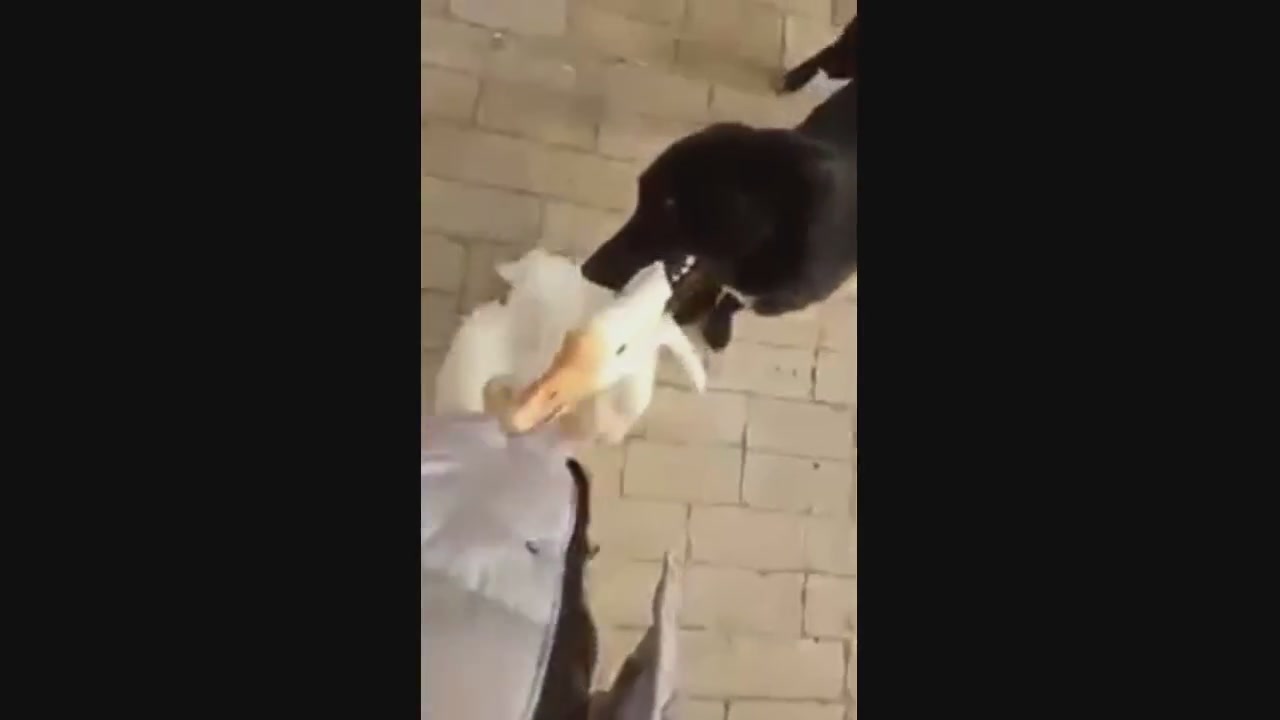 Собака защищает от гуся