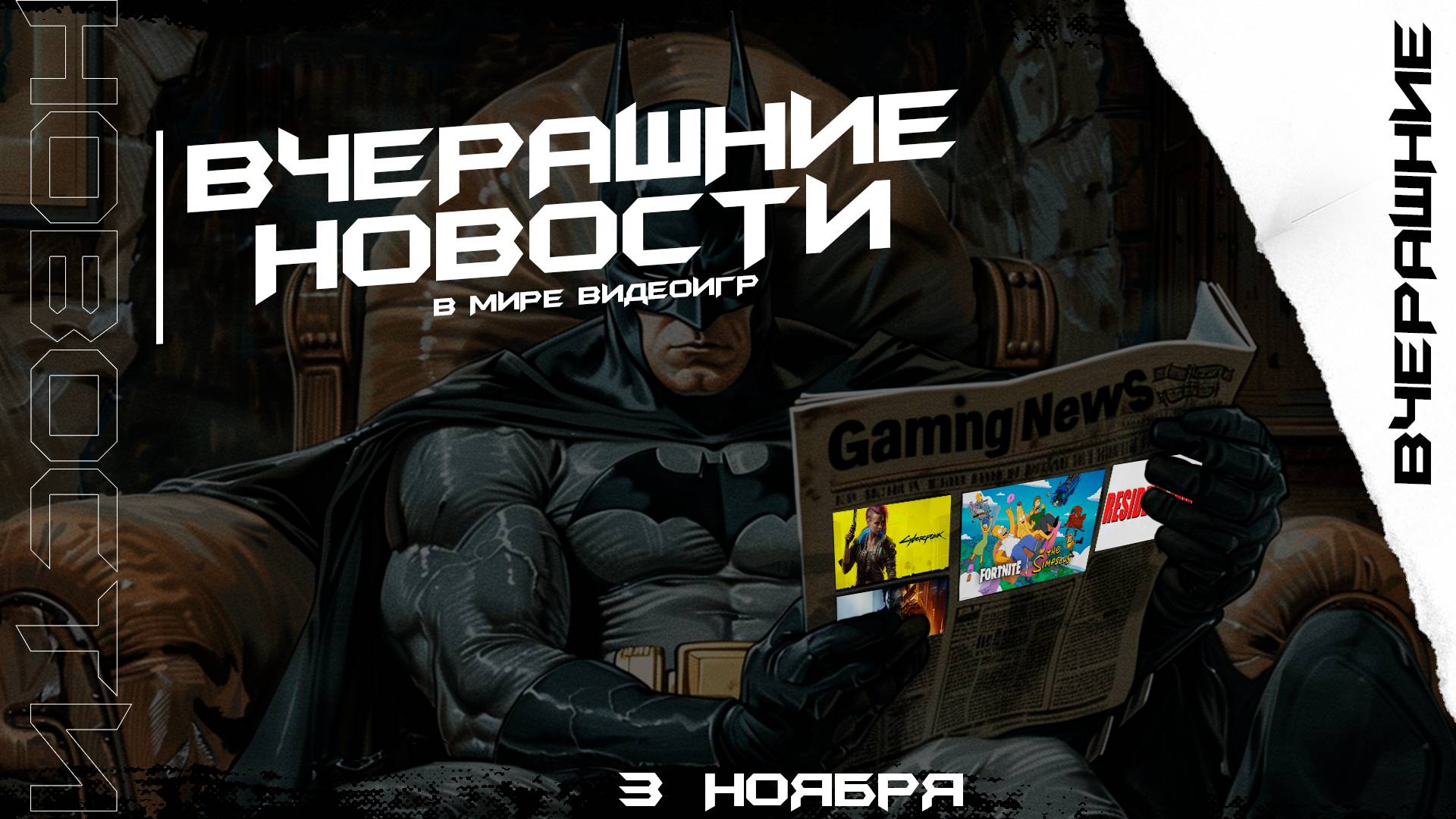 Игровая индустрия не стоит на месте: за последнюю неделю вышло столько новостей, что не рассказать о них просто невозможно. Новые кроссоверы, неожиданные коллаборации, громкие заявления и возвращение культовых серий !!! И всё это ты узнаешь в новом выпуске "Вчерашние Новости" P.S. В этом видео собрана вся интересная информация в мире видео игр, которая появилась ВЧЕРА (01.11.2025 - 02.11.2025)!!! =============================================================================== Вступление - 0:00 Fatal Fury: City of the Wolves — в игру добавят Чунь Ли из Street Fighter - 0:35 Fortnite — тройной кроссовер: Симпсоны, Чужой и, возможно, Гарри Поттер - 1:19 Heroes of Might & Magic: Olden Era — видео о вампирах и успех демоверсии - 2:34 Cyberpunk 2077 — создатель хочет вернуть Киану Ривза - 3:21 Call of Duty: Black Ops 7 — кампания и зомби могут выйти раньше - 4:05 Resident Evil HD Remaster и Zero — теперь без DRM в GOG - 4:58 Hatred — загадочный тизер и возможное продолжение - 5:44 Конец - 6:39 ================================================================================= Подпишитесь на эти каналы и не пропускайте новые выпуски "Вчерашние Новости"! Моя группа в Tg - https://t.me/batmyyyynfamily Мой Boosty - https://boosty.to/batmyyyyn Моя VK группа - https://vk.com/batmyyyynteam Моя группа в Discord - https://discord.com/invite/FJvy8gx Мой Twitch - https://www.twitch.tv/batmyyyyn Мой Inst ( запрещён в РФ ) - https://www.instagram.com/batmyyyyn Моя муз. группа - https://vk.com/nevzrosleyband Мой Trovo - https://trovo.live/s/Batmyyyyn Мой VK Play Live - https://vkplay.live/batmyyyyn ================================================================================= Музыка: 1. Все песни сгенерированы AI.SUNO ================================================================================= Источники: StopGame, ИГРОМАНИЯ, GameSpot, DTF, GamesRadar +, InsiderGaming, GamesIndustry.biz, IGN, Канобу, Game Developer, PC Gamer ================================================================================= #игры #видеоигры #игровыеновости #топигр #ЛучшиеИгры #ПопулярныеИгры #PlayStation #Xbox #nintendo #новостивидеоигр #игры2025 #ps4 #ps5 #pc #вчерашниеновости #batmyyyyn