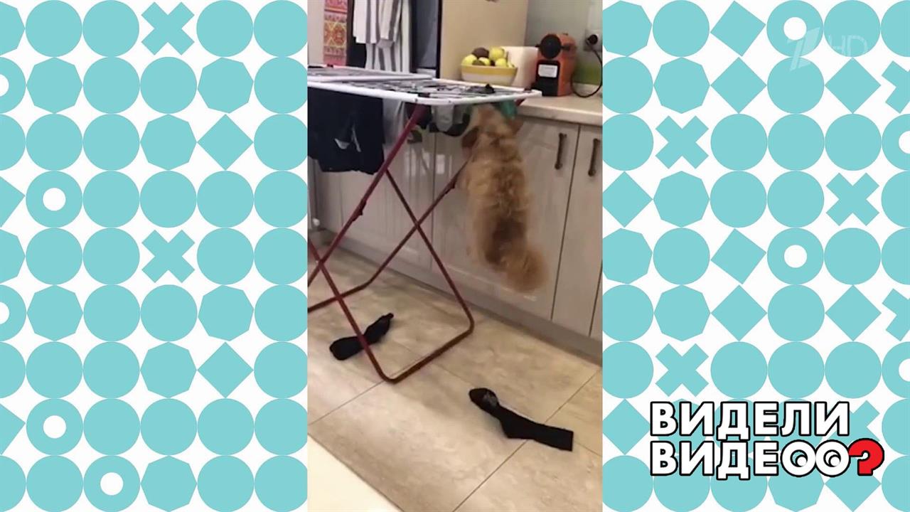 Холли помогает хозяйке складывать постиранные носки.