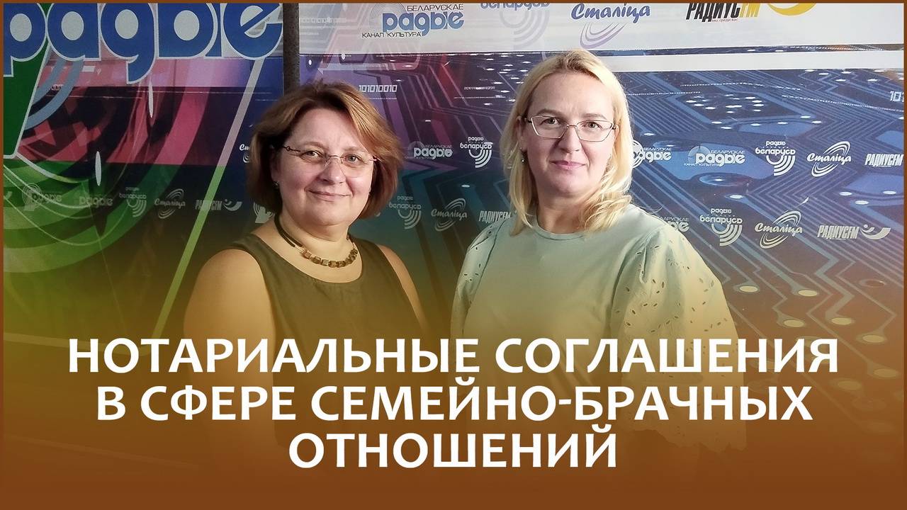 Нотариусы Минского городского нотариального округа Инна РОЩИНА и Елена СЕНОЖАТСКАЯ – в рубрике «Правовой понедельник» программы «Будем вместе шоу» с Андреем СИНИЦЕЙ. Какие соглашения могут заключаться с участием нотариусов между супругами, состоящими в браке, как они затрагивают сферу отношений родителей и детей? Что является объектами таких соглашений, а на какую собственность или имущество распространяться не могут? Как часто в соглашениях фигурируют такие понятия, как брачный договор, право собственности, алименты, содержание несовершеннолетних детей, приобретённое до заключения брака имущество и другие? Ответили на вопросы радиослушателей.