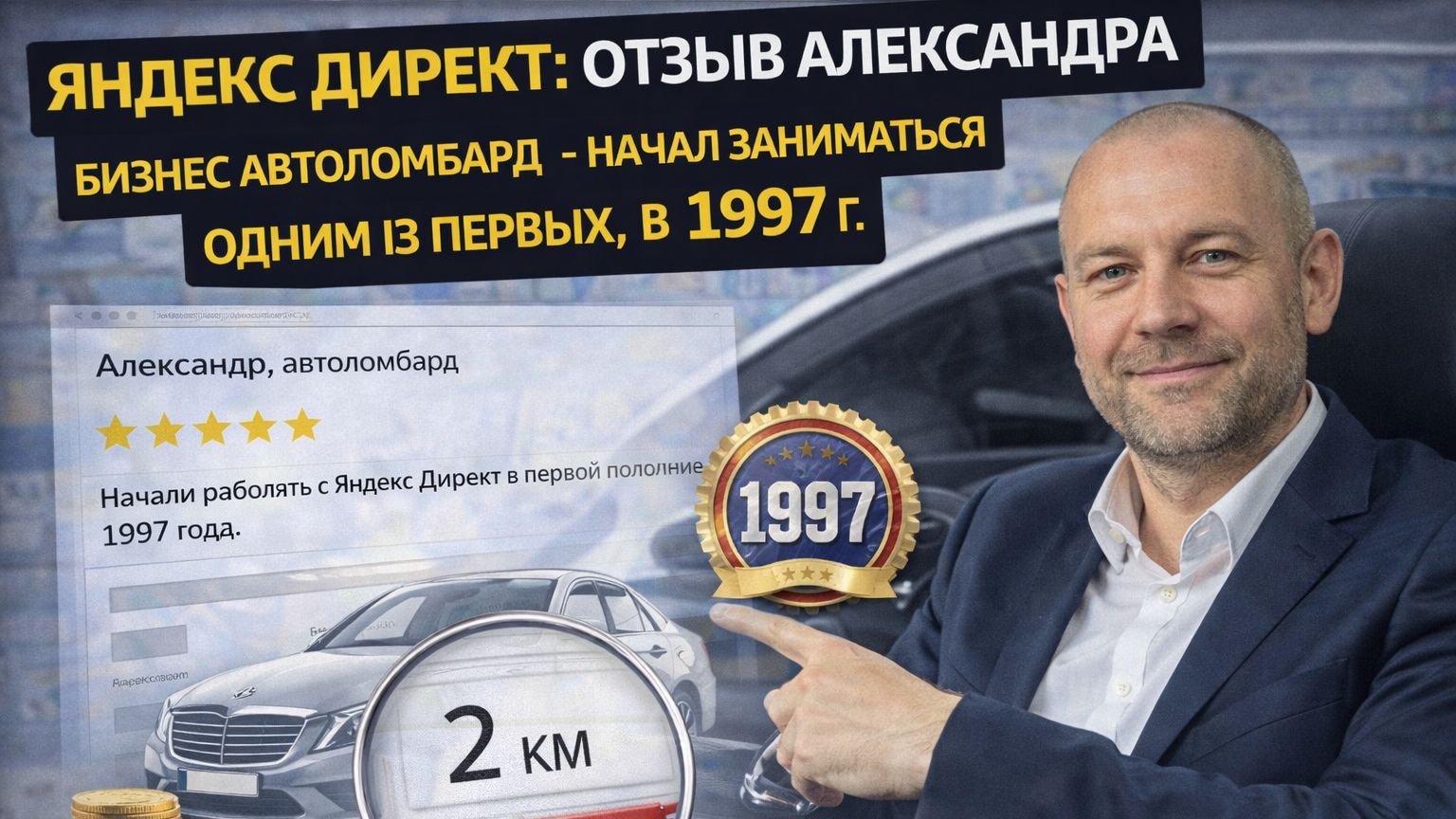Яндекс Директ: отзыв Александра, бизнес автоломбард, начал заниматься одним из первых, в 1997 г.