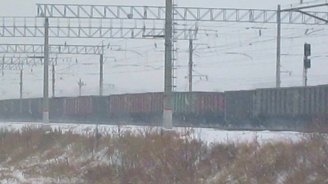 Товарный поезд едет. Стоять близко - опасно!