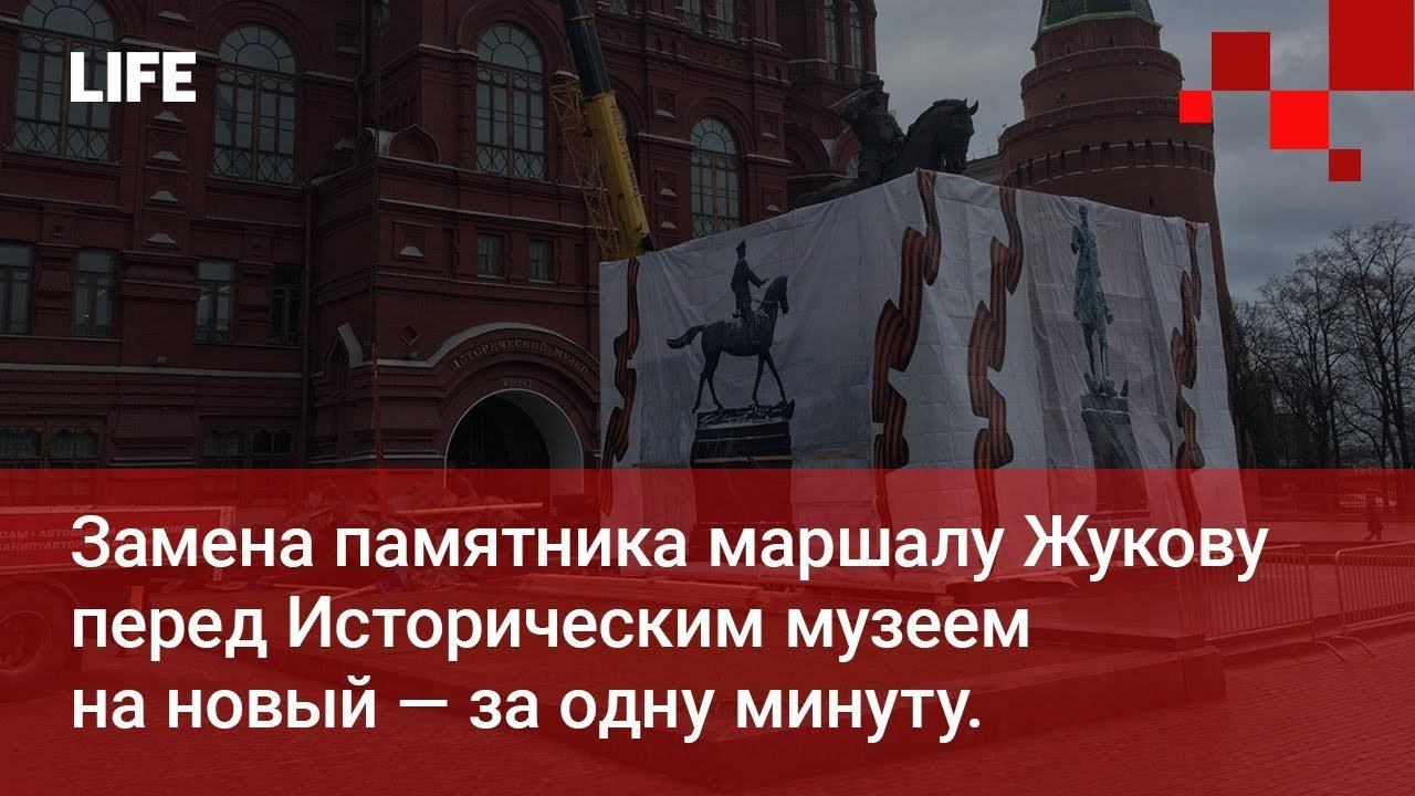 Замена памятника маршалу Жукову перед Историческим музеем на новый — за одну минуту.