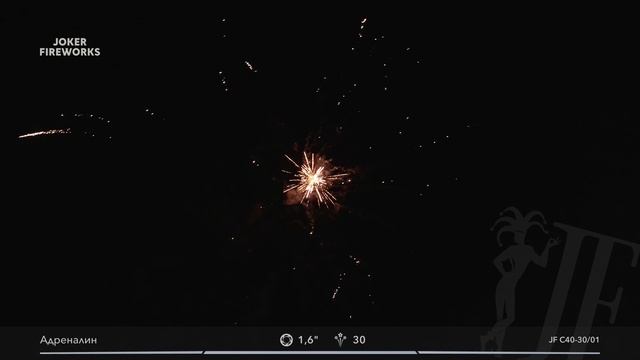 Салютная установка «Адреналин» JF C40-30-01 оптом от производителя Joker Fireworks | Джокер Фейерверки Калибр: 1,6 дюймов 30 выстрелов Эффекты: 1. Белое мерцание с красно-зелёным пионом и белым шлейфом. 2. Синий пион с треском и синим шлейфом. 3. Красная георгина с зелёным мерцанием и красным шлейфом. 4. 1000 хризантем с фиолетовыми и синими звёздами и фиолетовым шлейфом. 5. Серебряная волна с красным мерцанием и серебряным шлейфом. 6. Парчовая корона с 1000 хризантем и золотым шлейфом. Поставляем товары для праздника и бытовую пиротехнику 500+ компаниям в России, Казахстане и Беларуси. Каталог продукции онлайн: https://jf-pyro.ru/catalog/