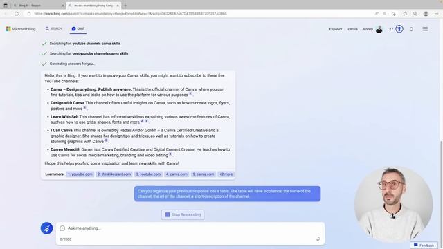 In this video, I'll share my honest review of Bing - Microsoft's search engine that recently integrated ChatGPT. As an early user, I got to test out the new AI-powered Bing: you'll see how it has improved dramatically and how it might even outperform the famous AI chatbot. If you have any thoughts or questions, feel free to leave them in the comments below - I'd love to hear from you! ✅ LINKS MENTIONED IN THE VIDEO • Bing: https://www.bing.com/ • Turn ChatGPT into your Personal Assistant: https://youtu.be/7ofzqRDFlsA • ChatGPT for LinkedIn: How AI can boost your profile: https://youtu.be/WhTvBLWPNKo • How to create AI ART Masterpieces with Midjourney | EASY Tutorial: https://youtu.be/ZfrTPBU0c5s • How to use DALL·E in 10 minutes: https://youtu.be/eipIjwaNHow • 5 Best AI Text-to-Image Tools of 2023: https://youtu.be/7znl4viKrW0 ✅ NEW TO CANVA? • Sign up for FREE NOW: https://partner.canva.com/mgXDrX ✅ GET A 45-DAY CANVA PRO FREE TRIAL • Click here: http://dianamunoz.co/freecanvapro Benefit from 45 days of Canva Pro free trial, which is 15 days extra than what is offered via the Canva website! ✍ Extended trial links are unfortunately restricted in some regions (like India ?). We hope that Canva will allow these links to work in all parts of the world in the future. In the meantime, you can still support this channel by using OUR link (instead of Canva’s generic one) and try Canva Pro for 30 days.? Here’s the link: https://partner.canva.com/a1boLM ✅ GET UNIQUE CANVA TEMPLATES • http://dianamunoz.co/CanvaProfile ✅ VIDEO CHAPTERS 00:00 Intro 00:12 What is Bing? 00:53 How to get access to Bing 03:41 Let's test how Bing deals with up-to-date information (vs. ChatGPT) 07:45 About quoting the sources and fact-checking 08:43 Bing provides links to specific web resources 13:36 Is Bing as good as ChatGPT when it comes to different types of prompts, such as... 13:46 Organizing information into a Table 16:39 Analyzing data we feed it and answering specific prompts 19:17 Replying to an email 21:40 Translating text into another language 22:59 Using markdowns to format information 24:21 Acting as an Expert and simulating a Job Interview 27:17 Conclusion: Bing vs. ChatGPT, which one is better? ✅ YOU MAY ALSO LIKE • Curious about AI? Check out our Generative Tools Playlist: http://bit.ly/rondiplayai • Find more Useful Tools for Content Creators in our Playlist: https://bit.ly/rondiplayothertools ✅ KEEP LEARNING • SUBSCRIBE for more free tutorials: https://bit.ly/YTcanva • Get our 10 Canva Courses for Free: https://dianamunoz.co/rondi/ • Ronny's Canva Master Course: http://bit.ly/CanvaMasterCourse • Personal Branding Master Course: http://bit.ly/PersonalBrandingRonny ✅ WHERE TO FIND ME • https://www.facebook.com/LearnWithRonny • https://www.facebook.com/groups/learnwithronny • https://www.linkedin.com/in/ronnyhermosa/ • https://www.udemy.com/user/ronny-hermosa/ • https://www.skillshare.com/r/user/ronnyhermosa ✅ BUSINESS REQUESTS ONLY • hello@teamrondi.com Thanks for watching! You guys are awesome :) Legal Disclaimer - This video contains affiliate links. If you use them and make a purchase via these links, we get a small commission (without the service or product being more expensive for you). This video is not sponsored. #RonnyHermosa #openai #chatgpt #bing