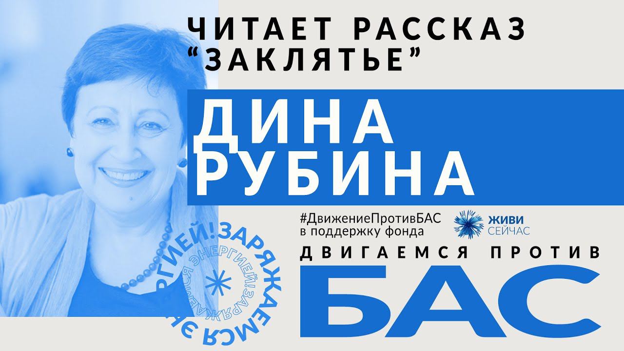 #ДвижениеПротивБАС #ЖивиСейчас #ДинаРубина Писательница Дина Рубина читает свой рассказ "Заклятье". Сделать пожертвование в фонд «Живи сейчас» - https://alsfund.ru/campaign/pomoch-fondu/ 19 июня, в канун Международного дня борьбы с БАС, прошел 10-часовой онлайн-марафон в поддержку благотворительного фонда «Живи сейчас». Артисты, спортсмены, блогеры и известные люди объединились, чтобы собрать средства на работу единственного фонда, который помогает людям с БАС (болезнью Стивена Хокинга) – тем, кого болезнь лишает возможности двигаться.