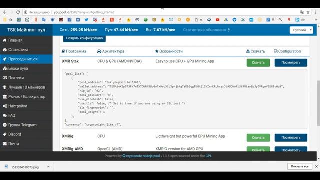 Где, как и чем добывать криптовалюту TEMASeK (TSK) на алгоритме CryptoNight V7 картами Nvidia GTX 1080Ti. Ссылка на канал BitExpmcc в Discord:https://discord.gg/k9Us69p Ссылка на форум bitcointalk по монете TEMASeK (TSK): https://bitcointalk.org/index.php?topic=4761352 Ссылка на пул youpool.io: http://youpool.io/TSK/?lang=ru# Ссылка майнера xmr-stak на Github: https://github.com/fireice-uk/xmr-stak/releases/tag/2.4.7 Ссылка на кошелек TEMASeK (TSK): https://github.com/TEMASeK-CryptoCoin/TEMASeK/releases Так же можно создать кошелек на этом пуле (по этой ссылке): https://getpool.org/tsk/?lang=ru#wallet Батник на валюту TEMASeK (TSK) - то что меняем в файле pools: "pool_list": [ { "pool_address": "tsk.youpool.io:3362", "wallet_address": "тут вставляем адрес вашего кошелька монеты TEMASeK", "rig_id": "тут ставим название вашего воркера", "pool_password": "x", "use_nicehash": false, "use_tls": false, /* Set to true if you are using an SSL port */ "tls_fingerprint": "", "pool_weight": 1 }, ], "currency": "cryptonight_lite_v7", Список пулов для добычи TEMASeK с нашим рейтингом: 1 https://crypto9coin.cf/tsk/# (не смогли подключиться) 2 http://youpool.io/TSK/# 3 https://getpool.org/tsk/# Подписаться на мой канал можно по этой ссылке: https://www.youtube.com/channel/UCHZ0Z_q4vXtHa27RsBkga8w/?sub_confirmation=1 Спасибо за просмотр.