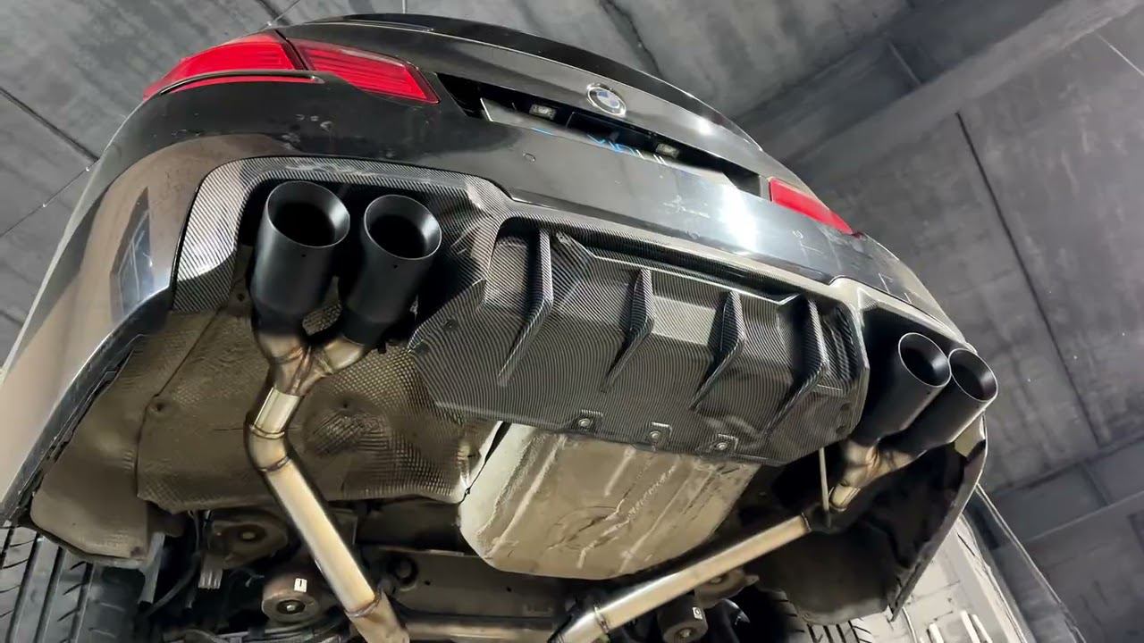 https://vinylkazan.ru/daunpajpy-na-avto/ BMW 5 series Сделали раздвоение выхлопной системы с изменением звука. Установили насадки и заменили задний диффузор.