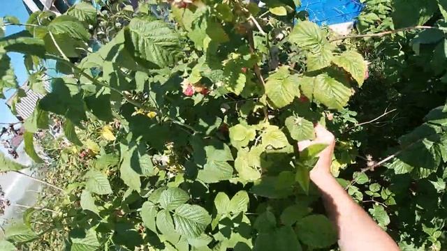 Собираю малину в саду и другие работы.