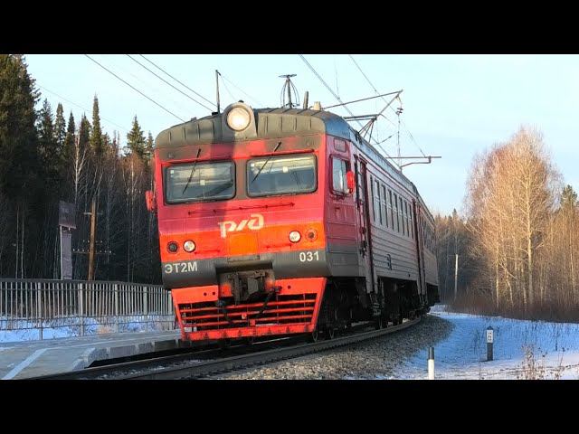 ЭТ2М-031 сообщением Екатеринбург-Пасс. — Дружинино делает остановку на о.п. Гусевка