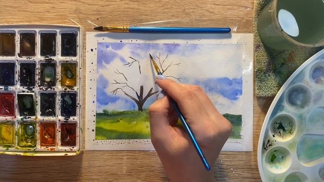 Как нарисовать дерево весной карандашом и акварелью начинающим | Рисунок для детей