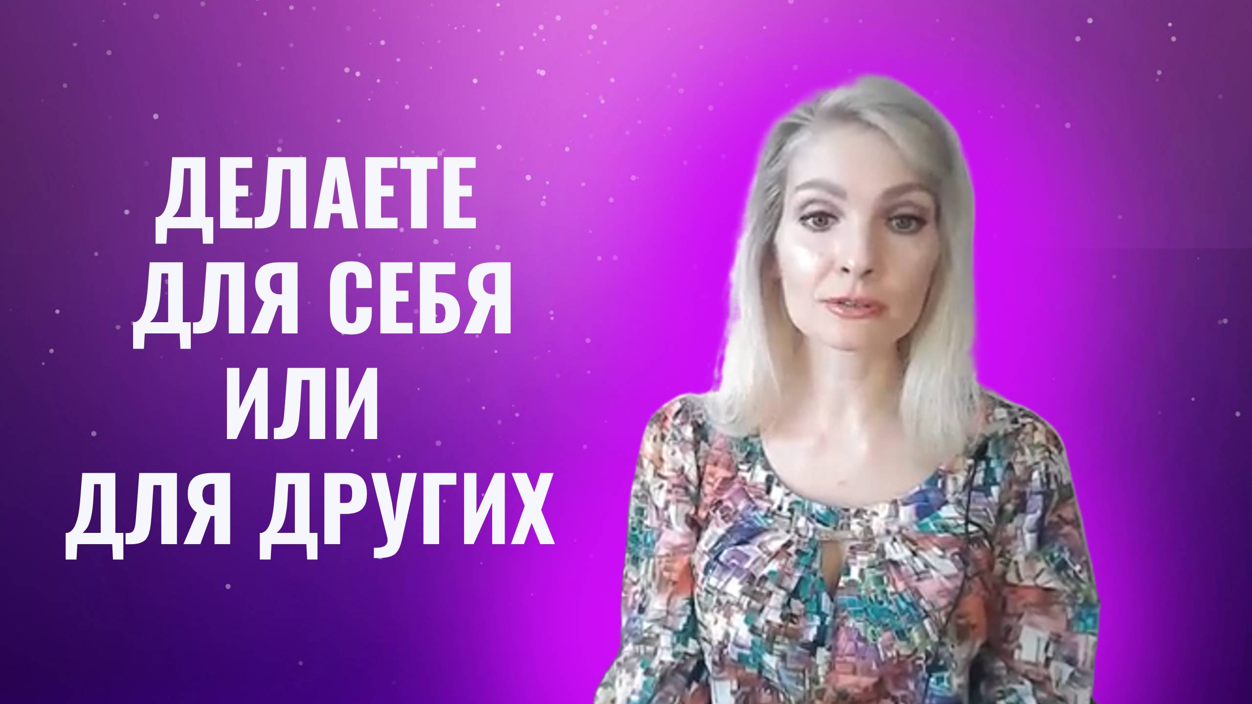 Вера Бокарева, психолог, коуч. В этом видео: Делаете для себя или для других Запись на онлайн-консультацию Веры Бокаревой: WhatsApp / Telegram: +7-963-231-37-12 verabo-hello@yandex.ru ТГ @vera_bokareva Телеграм-каналы: https://t.me/bokarevavera_psycoach https://t.me/verabokareva #цели #финансы #баланс #успех #бизнес #деньги #самопознание #планы #самооценка #коуч #психология #коучинг #карьера #саморазвитие #деньги #онлайнкоуч #коучонлайн #общество