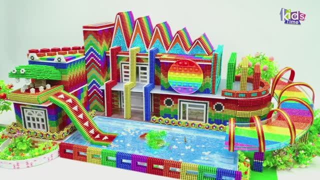 Магнитные шарики - Удивительный Особняк КРОКОДИЛА Из Магнитных Шариков С Горкой для Крокодила В Басс