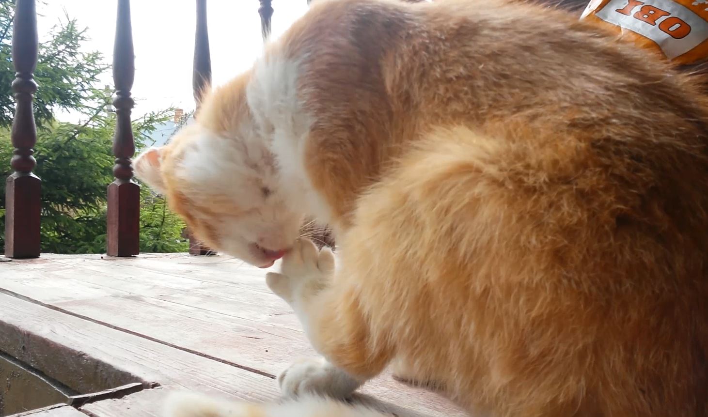 Солнечный котик умывается