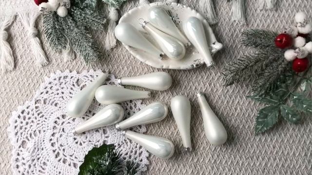 Набор ёлочных украшений ЭЛЕГАНТНЫЕ КАПЛИ, стекло, белые, матовые и глянцевые, 7.5 см, 12 шт., 011040
