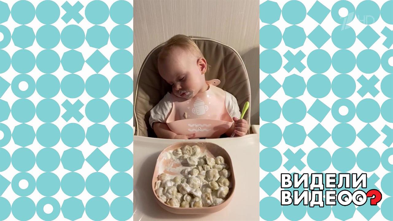 Сестры-близняшки Полина и Варя уснули за ужином, устав от поедания пельменей.