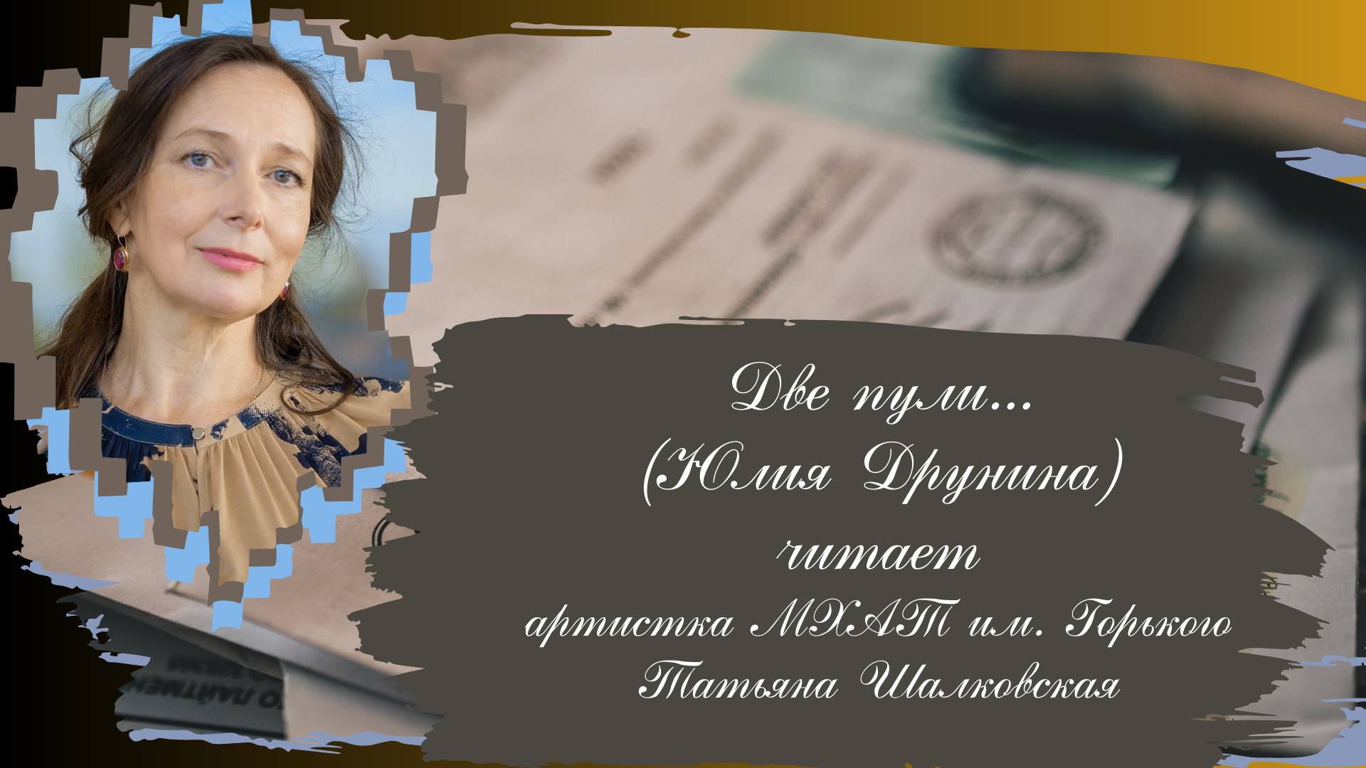 артистка МХАТ им. Горького Татьяна Шалковская, заслуженная артистка России, читает стихи Юлии Друниной. Полная запись выступления https://rutube.ru/video/4a0081a5d0353af49cf014ad175a3ca5/?r=wd ~~~~ В рамках проекта Народного артиста России Дмитрия Певцова «А нам судьбу России доверяли…» Бюро пропаганды художественной литературы Союза писателей России, артисты проекта, «Народный фронт» выступают по стране с литературно-музыкальной программой "А нам судьбу России доверяли..." Проект реализован при поддержке Фонда президентских грантов, Народного фронта. В 2024 году отмечается 100-летие со дня рождения ряда выдающихся писателей-фронтовиков – признанного классика отечественной литературы основателя жанра лейтенантской прозы Юрия Бондарева, поэтессы Юлии Друниной, поэта Николая Старшинова, писателей: Бориса Васильева, Виктора Астафьева, Василя Быкова, Владимира Богомолова. Их произведения были воплощены в театральных, оперных постановках вошли во всемирно-известную киноклассику – кинофильмы: «Горячий снег» (реж. Егиазаров), «А зори здесь тихие» (С.Ростоцкий), «Восхождение» (Л.Шепитько), «Иваново детство» (А.Тарковский) и др. В программе приняли участие народный артист России и руководитель проекта Дмитрий Певцов, ведущие мастера искусств – народный артист России Валентин Клементьев, заслуженная артистка России, артистка МХАТ им. Горького Татьяна Шалковская, заслуженная артистка России, профессор Московской государственной консерватории им. П.И.Чайковского Полина Федотова (фортепиано), заслуженная артистка Республики Башкортостан, солистка театра «Новая опера» им. Е.Колобова Елена Терентьева (сопрано), артист Малого театра Игнатий Кузнецов, лауреат международных конкурсов София Федотова (скрипка). Ведущая программы – директор Бюро пропаганды художественной литературы Алла Панкова. #Певцов #актер #Россия #Фронтовики #Культура #АнамСудьбуРоссииДоверяли #Фондпрезидентскихгрантов #ХудожественнаяЛитература #Литература #Концерт #Слово #Классика #Музыка ~~~~~ Бюро пропаганды художественной литературы организует литературные вечера. Читаем классику выразительно, играем красивую музыку, проникновенно рассказываем о писателе и эпохе. Если Вы любите нескучную классику и хорошую музыку ждем Вас на нашем канале и в соцсетях. Подписывайтесь на канал, чтобы не пропустить наши анонсы и видеозаписи. Ставьте лайки! Оставляйте комментарии! www.litprop.ru - Наш главный ресурс "Бюро пропаганды художественной литературы" https://vk.com/litprop - наша группа в Вконтакте https://www.youtube.com/@user-cu5gp8bp7j Наш канал Youtube с записями мероприятий #Певцов #актеры #Россия #Фронтовики #Культура #АнамСудьбуРоссииДоверяли #Фондпрезидентскихгрантов #ХудожественнаяЛитература #Литература #Концерт #Слово #Классика #Пушкин #Лермонтов #Тургенев #Гоголь #Школа #Чехов #Музыка #Фортепиано #Скрипка #театр #спектакль #проект #Концерт #Панкова #Федотова #Терентьева #Кузнецов #Клементьев #Шалковская #Москва #КудаПойтиВМоскве #вечер #Чтение #цитаты #Классики