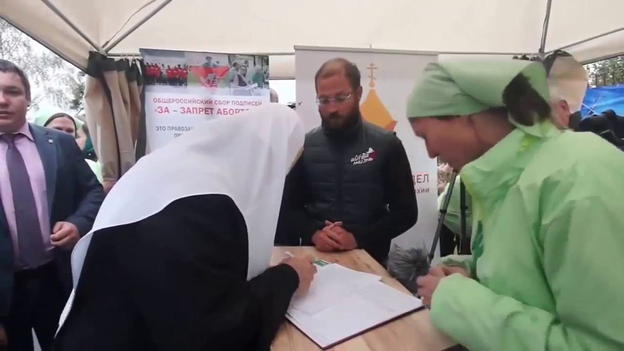 Святейший Патриарх Московский и всея Руси Кирилл ставит подпись за запрет абортов. ВК