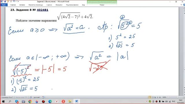 №402481 из РешуОгэ математика. Найдите значение выражения с корнями