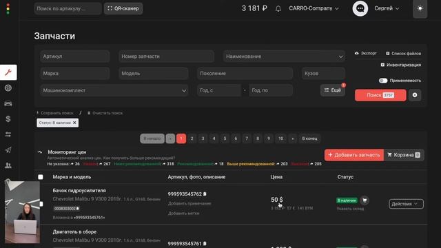 Продажа и резерв запчастей в системе CARRO.Бизнес