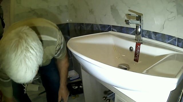 Пошаговая установка тумбы с раковиной, смесителем и сливом в ванной комнате.