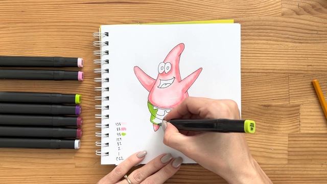 Как нарисовать "Патрика" карандашом и скетч маркерами | Рисунок для детей поэтапно и легко