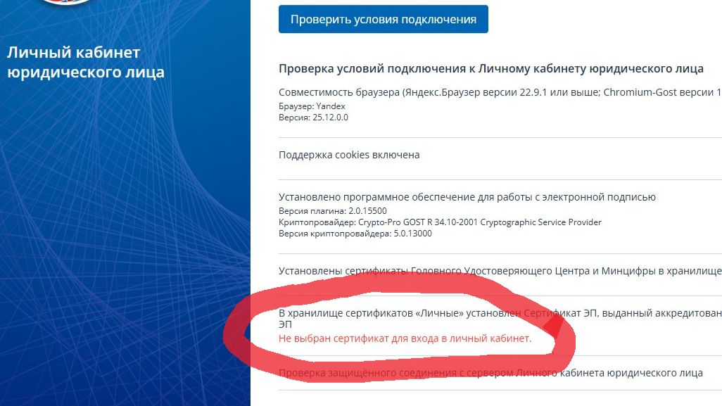 В ЛК не видит сертификат ЮЛ или ИП