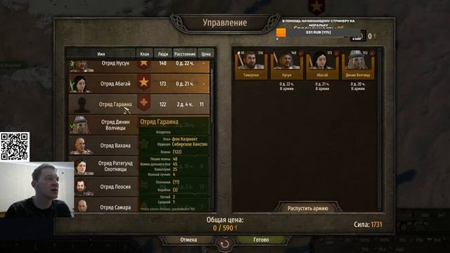Начинаю новое прохождение в Mount and Blade , в стримерстве новичек , не судите строго. Сильно разозлили Сибирское ханство - Тамерлан атакуеее