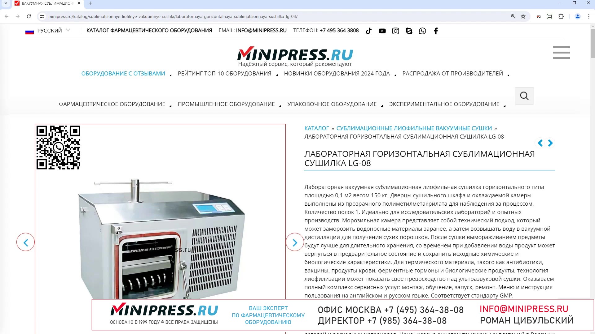 Minipress.ru Лабораторная горизонтальная сублимационная сушилка LG-08
