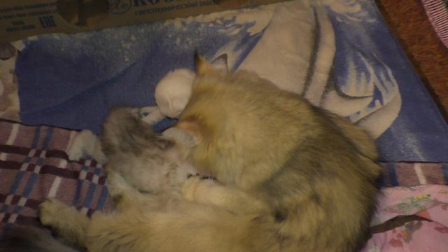 2 мамки облизывают котят малышей
