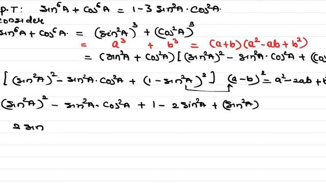 Prove that 〖sin〗^(6 ) A+ 〖Cos 〗^6 A= 1- 3 〖sin〗^2 A .〖cos〗^2 A