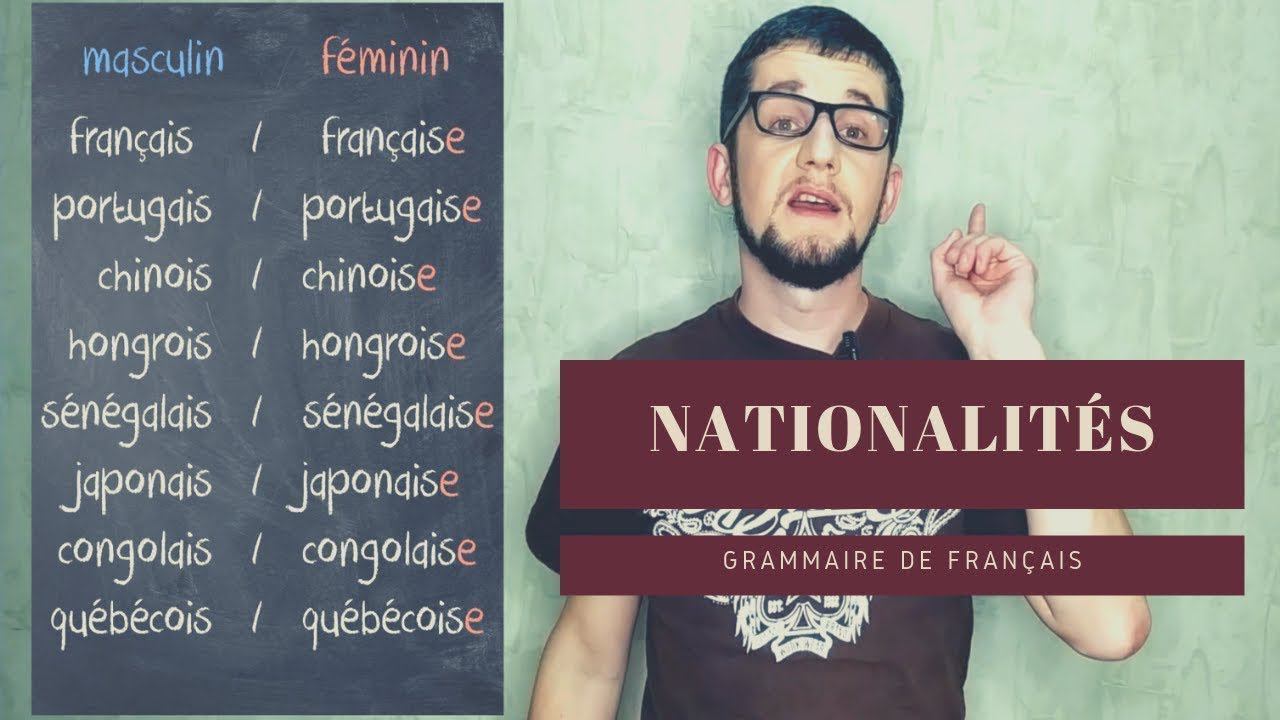Quiz « Nationalité en français » : https://t.me/francais_avec_kail/1671 Comment dire sa nationalité en français ? Telegram: https://t.me/francais_avec_kail/ Instagram: https://instagram.com/francais_tres_facile/ Pour aider et soutenir le projet: PayPal kail.facilier@gmail.com Cette vidéo porte sur les nationalités. Comment dire sa nationalité en français ? Comment former le féminin des adjectifs de nationalité ? Quelles en sont les exceptions ? Exercices: 1. Quelle est votre nationalité ? 2. Avez-vous des amis étrangers ? Quelles sont leurs nationalités ? 3. Qui aime la bière et les frites ? 4. Qui mange des sushis ? 5. Quelle est la nationalité de votre acteur/actrice préféré(e) ?