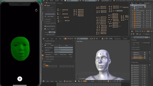 In this episode, I am giving a quick demonstration using Manuel Bastioni LAB Character generator and iPhone X Face Scanning to create a quick working 3D face animation rig. I am using Animation Nodes and AddOSC add on to hook everything together, practically a beautiful node tree mechanism that drives everything. This setup can be further improved and simplified so it performs faster. The auto generated character comes with a bunch of Face Shapes that I can use with iPhone X Blendshapes Coefficient, so it should just work. If you have any question or feedback, you can leave comments below. Thanks. Download Manuel Bastioni LAB: http://www.manuelbastioni.com/manuellab.php Download Animation Nodes: https://github.com/JacquesLucke/animation_nodes Download Add OSC: http://www.jpfep.net/pages/addosc/
