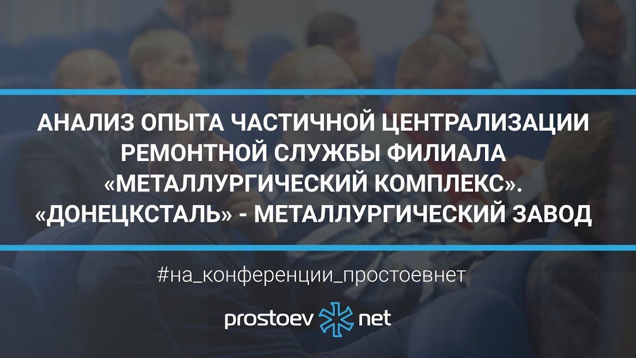 http://www.prostoev.net/ Мы информационно-образовательный проект по вопросам организации управления процессами поддержания надежности, проведения технического обслуживания и ремонтов технологических систем и оборудования. Подписывайтесь на наш YouTube канал https://www.youtube.com/user/prostoevnet _ VIII профессиональная конференция PROSTOEV.NET «Актуальные вопросы, методологии и опыт проектов управления процессами ТОиР» октябрь 2013 Тема сегодняшнего видео «Анализ опыта частичной централизации ремонтной службы филиала «Металлургический комплекс». ПрАО «Донецксталь» - металлургический завод». ТОиР. RCM». 00:00 prosroev.net 00:43 Анализ опыта частичной централизации ремонтной службы Филиала «Металлургический комплекс» ПрАО «Донецксталь» - металлургический завод» Докладчик: руководитель проекта «Школа ТОиР: кузница мастерства» Александр Владимирович СИДОРОВ 01:06 Проект «Школа ТОиР: кузница мастерства» 01:40 Филиал «Металлургический комплекс» ПрАО «Донецксталь» - металлургический завод» 01:59 Система ТОиР 02:35 Стратегия ТОиР 04:26 Замкнутый круг реактивной стратегии ТОиР 06:12 Способ организации ремонтного обслуживания 06:44 Особенности ремонтной службы предприятия 07:39 Оценка эффективности ремонтного обслуживания 08:27 Анализ методики оценки 08:42 Задачи централизации и средства их решения 11:42 Основные решения централизации 14:10 Хронология централизации 18:45 Аварийность 20:39 Численность персонала 23:10 Выполнение работ собственными силами 26:00 Выводы _ Мы в соцсетях: Fb https://www.facebook.com/www.prostoev.NET/ VK https://vk.com/prostoev__net Linkedin https://www.linkedin.com/groups/8464641 Одноклассники https://ok.ru/group/58505577300000 Инстаграм https://www.instagram.com/prostoevnet/ _ http://www.prostoev.net - Информационно-образовательный портал Управления ТОиР #на_конференции_простоевнет #prostoevnet #простоевнет #техническое_обслуживание #ремонт #тоир #rcm #RCM #управление_надежностью #надежность_оборудования