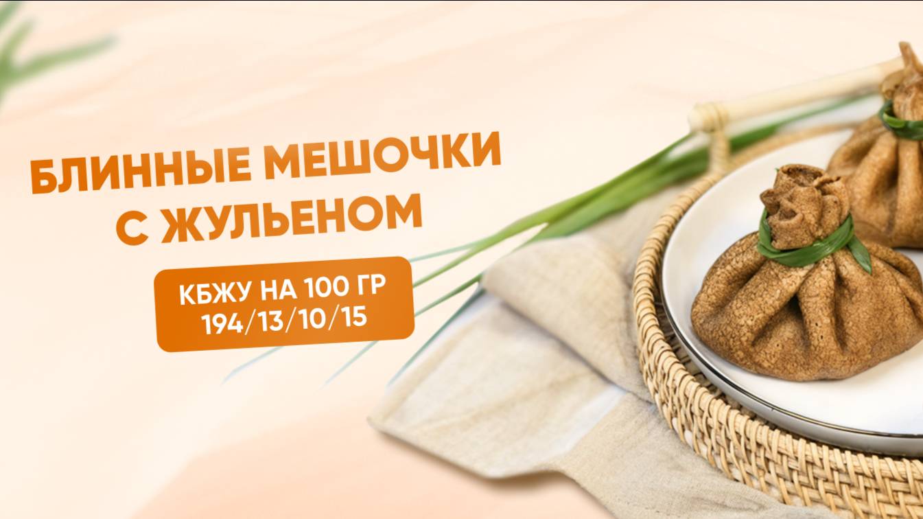РЕЦЕПТ блинных мешочков с жульеном, КБЖУ 194/13/10/15