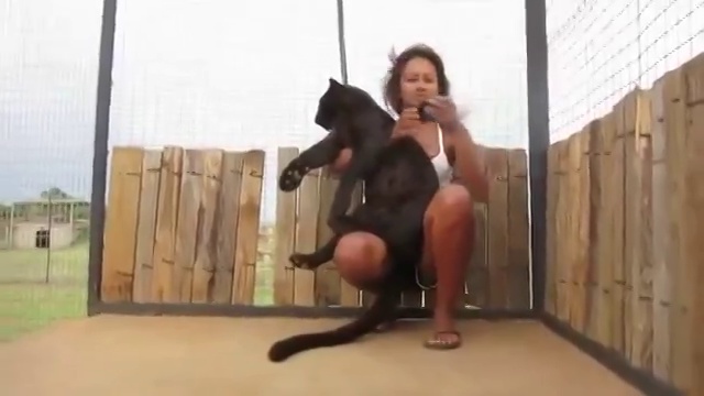 Леопард прыгнул к спасательнице