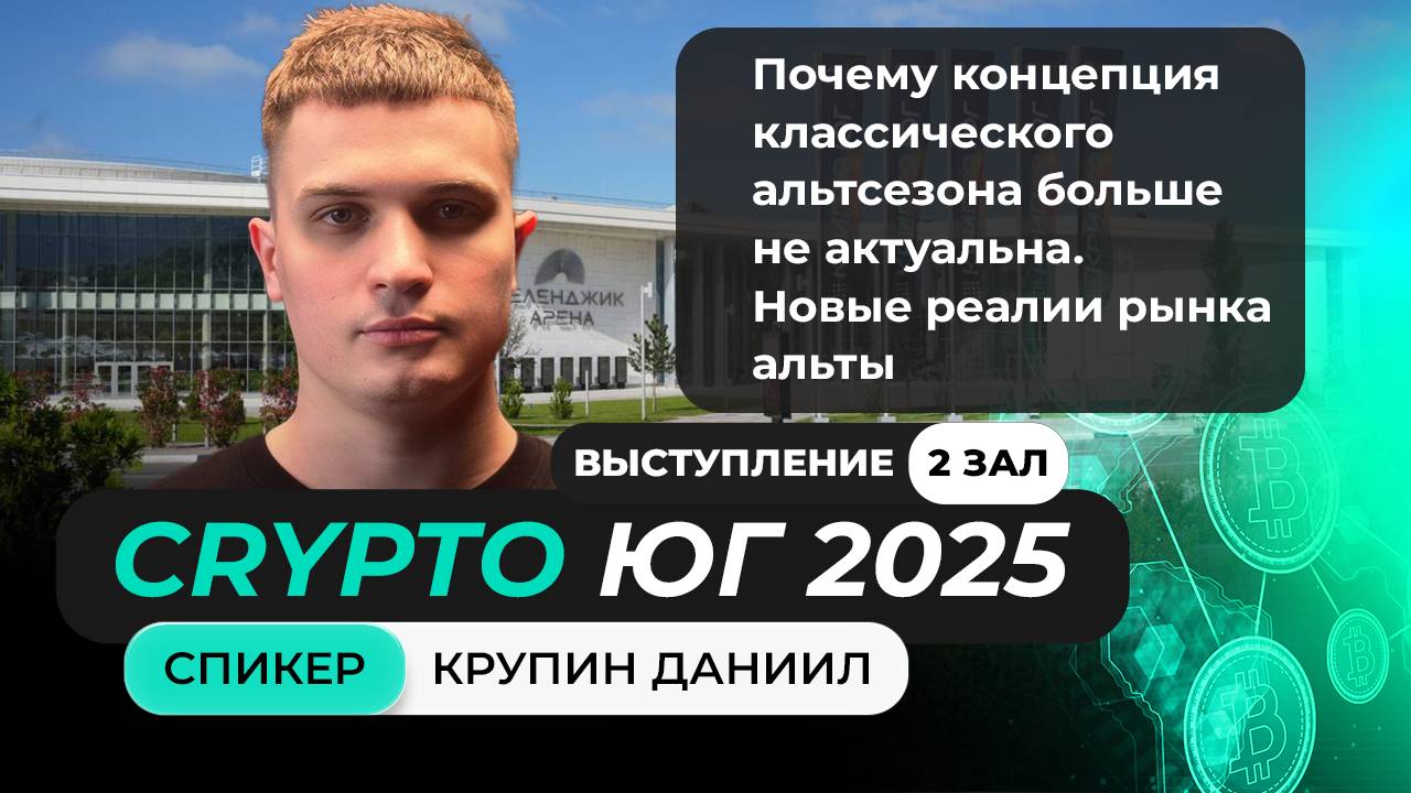 31 мая - 1 июня состоялось крупнейшее крипто-мероприятие Юга - Крипто Юг 2025. Выступление Даниила Крупина на главном крипто форуме Юга! Тема: Почему концепция классического альтсезона больше не актуальна? Даниил Крупин - Профессиональный трейдер, преподаватель DYOR Academy. Мы благодарны каждому участнику и гостю форума - это самое масштабное наше мероприятие на сегодняшний день, и мы не собираемся останавливаться! Уже сейчас открыта продажа стендов и билетов на 6-7 июня 2026 года - успейте по самым лучшим ценам 😉 Больше информации о форуме на сайте: https://cryptoug.ru