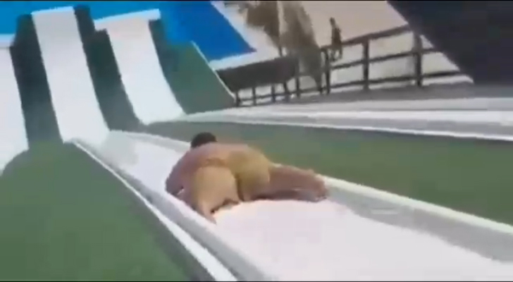 Пацан отлично прокатился на водной горке. #прикол #мексиканец #горка #бассейн