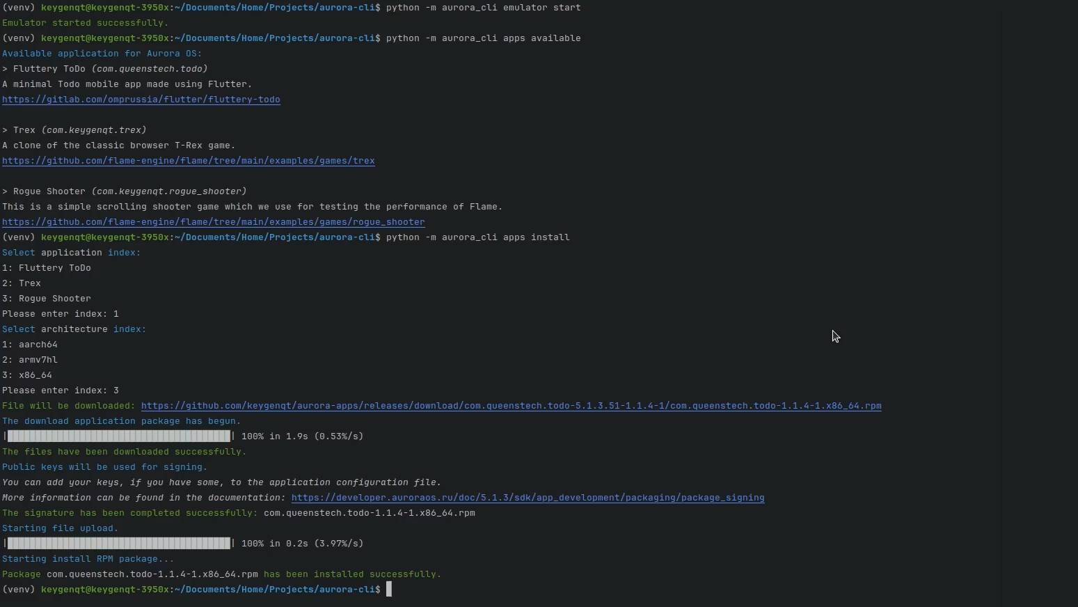 Aurora CLI. Установка примеров на Emulator / Device.