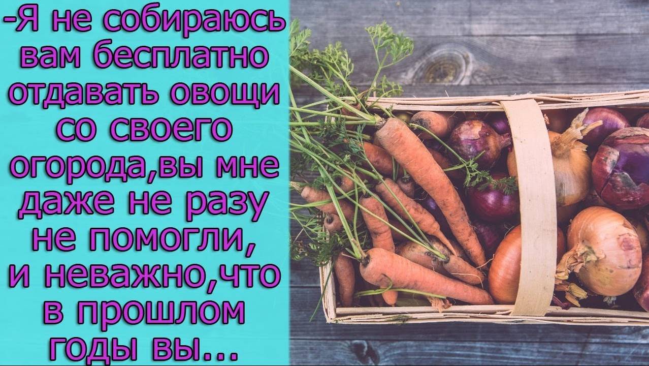 - Я не собираюсь вам бесплатно отдавать овощи со своего огорода, вы мне даже ни разу не помогли